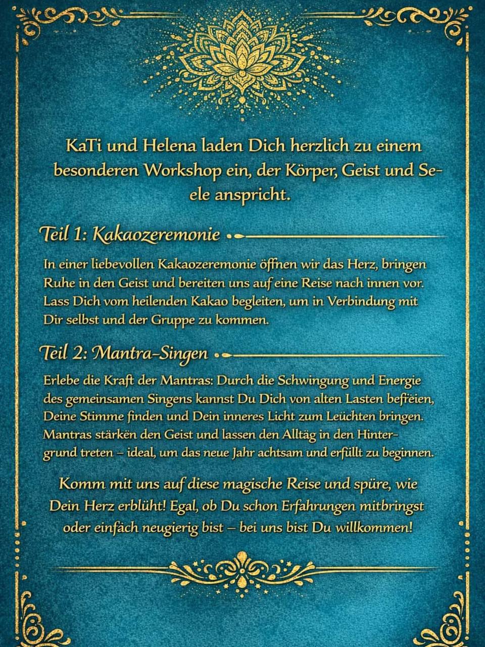 Freue dich auf einen faszinierenden Vortrag über die Geheimnisse von Mantra und Meditation – und darüber hinaus auf eine inspirierende Begegnung mit einem außergewöhnlichen Menschen, der nicht nur über Mantren spricht, sondern auch grundlegende Weisheiten über Spiritualität und das Leben teilt.